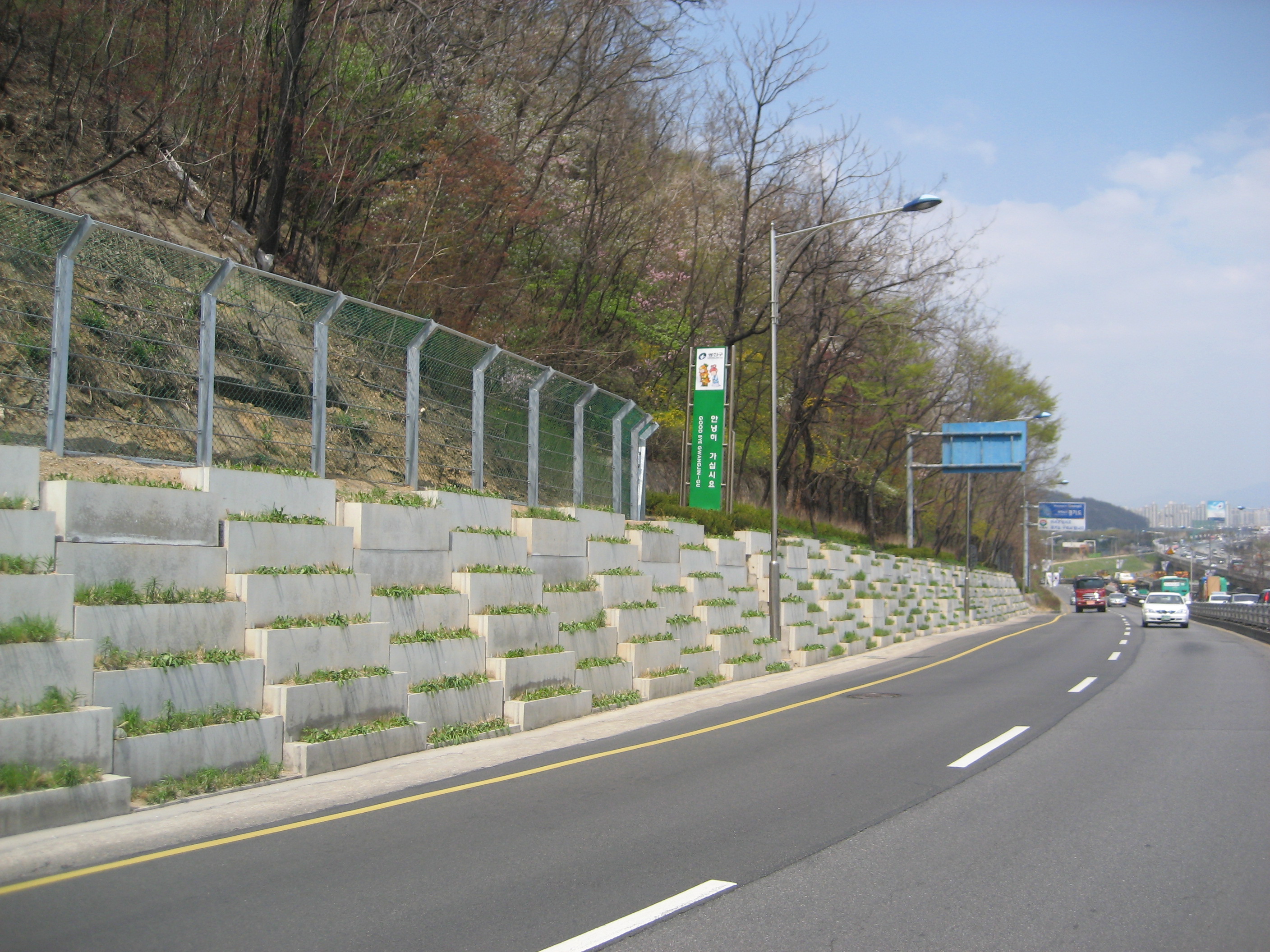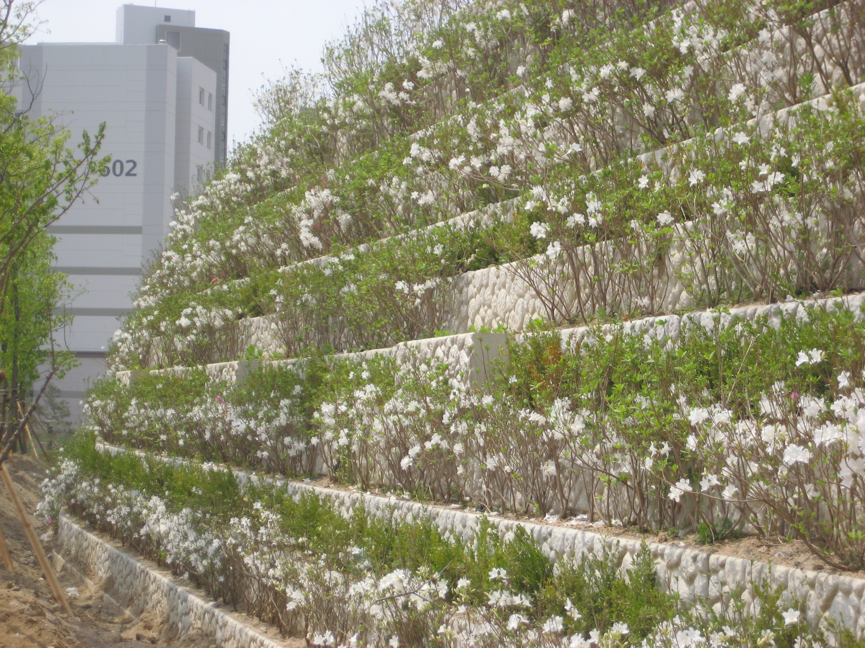 ㆍ도심옹벽의 자연화 구 도심 및 도심의 콘크리트 옹벽에 자연 친화적인 옹벽블록을 형성합니다.